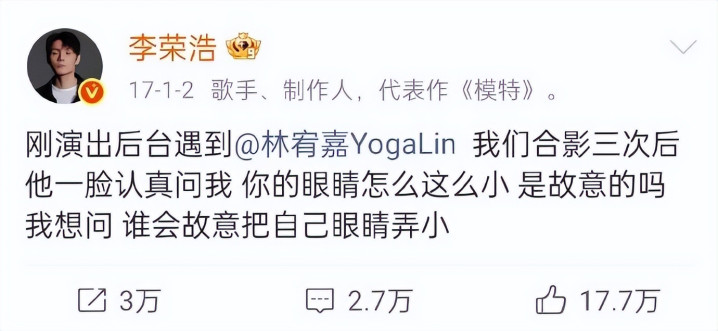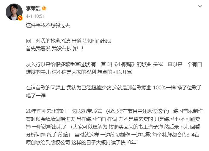 对此李荣浩很快回话,称《小眼睛》是 20 多年前刚来北京时的扒带熏陶作品。
