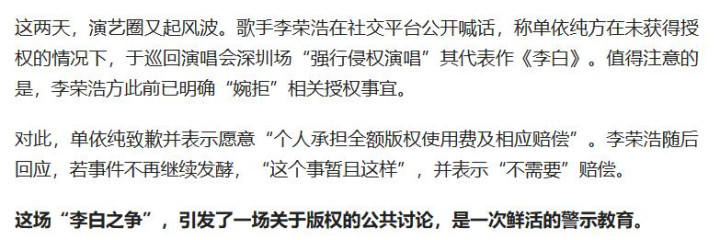 官媒的发声,也让这场版权之争的意旨越过了个东谈主矛盾,高潮到了行业法式的层面。