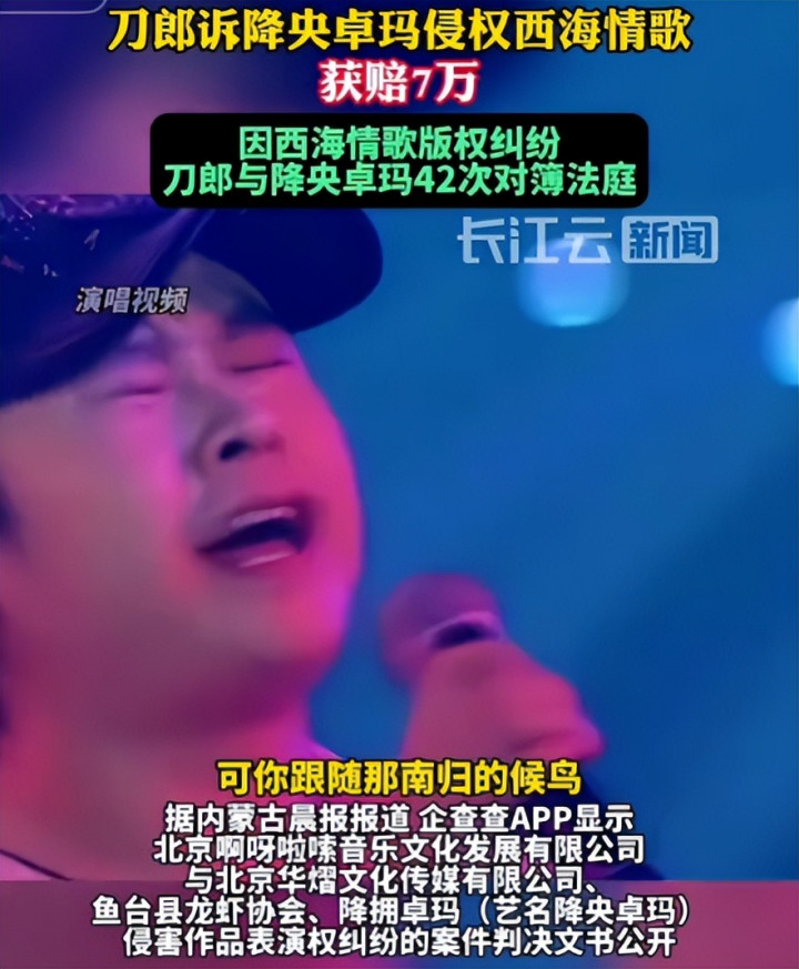 刀郎曾为了版权死磕多年,将屡次侵权演唱的降央卓玛告上法庭,最终让法院定下铁章程: