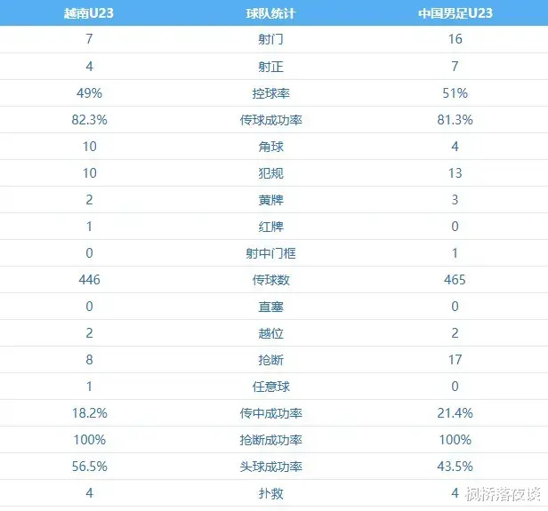 全场数据足以印证这份碾压的含金量:中国队控球率51%,16次射门7次射正,反观越南队仅4次射门1次射正,攻防两端的差距一目了然。这不是势均力敌的博弈,而是全方位的实力压制,每一次传导、每一次冲击,都藏着千锤百炼的功底。