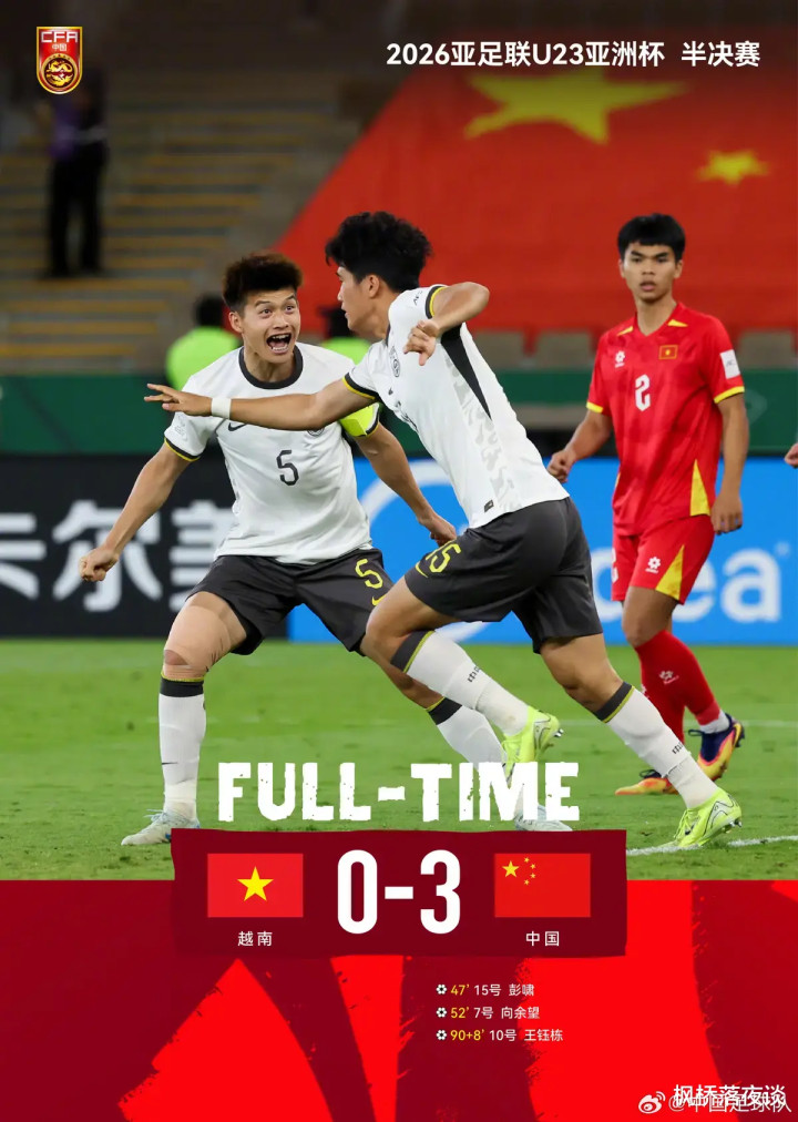 对于深陷低谷的中国足球而言,这场胜利的意义早已超越晋级决赛本身。它打破了“恐越症”的心理魔咒,证明中国足球完全有能力将东南亚强队按在脚下摩擦;更带来了久违的信心与希望,网络上一条高赞评论令人热泪盈眶:“看了这群00后踢球,才知道范大将军的预言可以被打破,我们不仅没输越南,还让他们绝望了。”