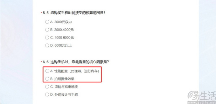 比如,问卷星2025年12月发布的手机选购问卷就清醒地败露,其选项中“影像功能”单独列为一项,而“游戏领略度”则被归入“性能树立”分支,用户如果想抒发对游戏的需求只可勾选“性能树立”,无法单独遴荐“游戏”,这就使得游戏需求的占比被东谈主为压低,影像需求则因为寥寂选项而被高估。