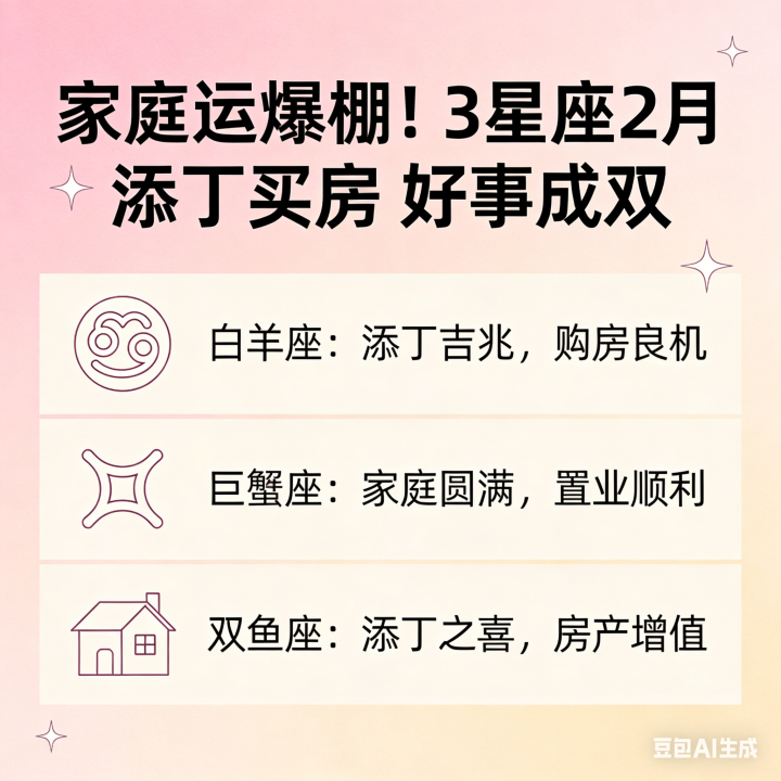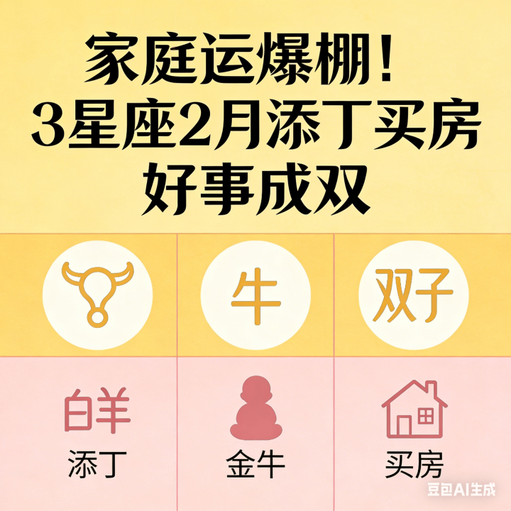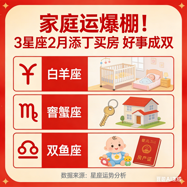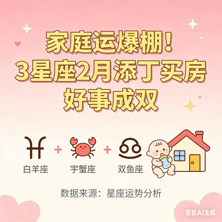 其实像小楠这么的情况,最近还真不少。占星师一又友跟我说,2月的星象对几个星座的家庭宫相配友好,容易迎来双喜临门的功德。今天就给群众盘一盘这3个运道星座,快望望有莫得你!