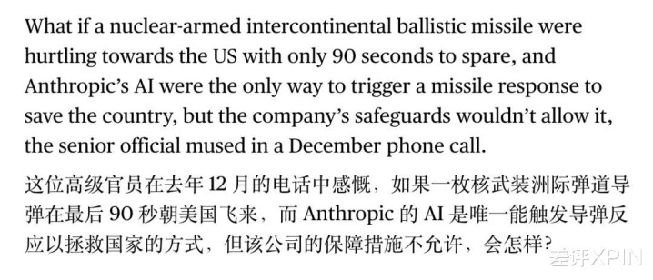 把柄彭博社的报说念,昨年 12 月的时候,一个好意思国国防官员就问过 Anthropic 的 CEO 达里奥 一个假定问题: