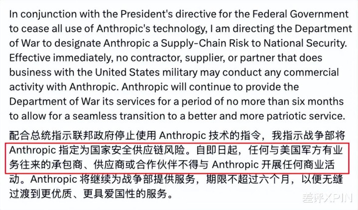 紧接着,好意思国国防部更是径直破裂,将这家前脚还在帮他们处分巧妙谍报的好意思国公司,崇敬定性为国度安全供应链风险,要求凡与好意思国军方有业务走动的承包商、供应商或协作伙伴,均不得与Anthropic开展任何交易看成。。。