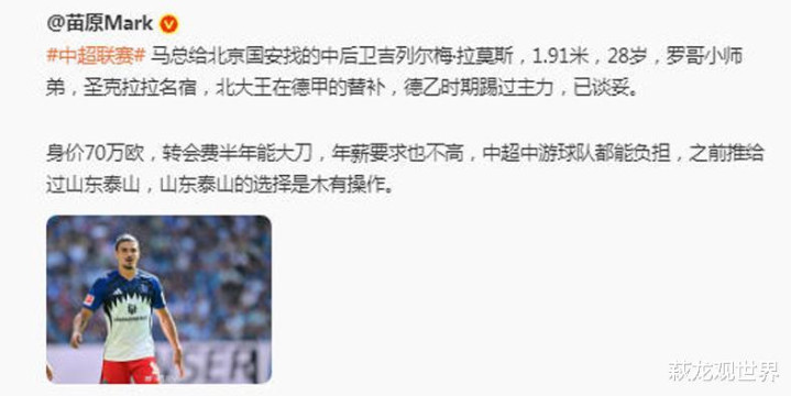 莫斯与汉堡的合同将于本赛季结束后到期,转会费将为10万欧元。目前德转身价为70万欧元。该媒体称,国安已要求拉莫斯周二在汉堡完成了体检。德甲保级队替补,开云体育踢中超够用了!有球迷调侃:“转会费便宜,不会有大坑吧!”“这可是方昊留下的转会费啊。”“方昊换个中卫外援,合适。”