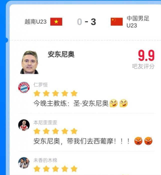 在比赛结束之后,主教练安东尼奥也被球员们高高抛起,记录这个伟大的时刻。说实话,中国足球已经很久没有这样让人热血沸腾的胜利,不是的一味防守,而是主动出击,拿下了属于我们的进攻之战,而安东尼奥的主动变阵让王钰栋、拜合拉木替补起到了奇效,打越南措手不及,起到了非常好的效果。